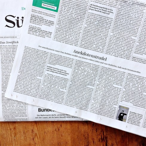 Tom Robbins, einer meiner absoluten Lieblingsautoren, wenn nicht gar der Erstplatzierte (sorry, Wolf Haas, aber Platz 2 ist besser als die goldene Ananas respektive die bronzene Schreibmaschine), dieser Tom Robbins also hat nun seine Memoiren veröffentlicht. Also veröffentlicht hat er sie schon vor ein paar Jahren, aber auf Deutsch sind eben erst erschienen, und ich durfte diesen tollkühnen Anekdotenstrudel für das Feuilleton der SZ rezensieren.